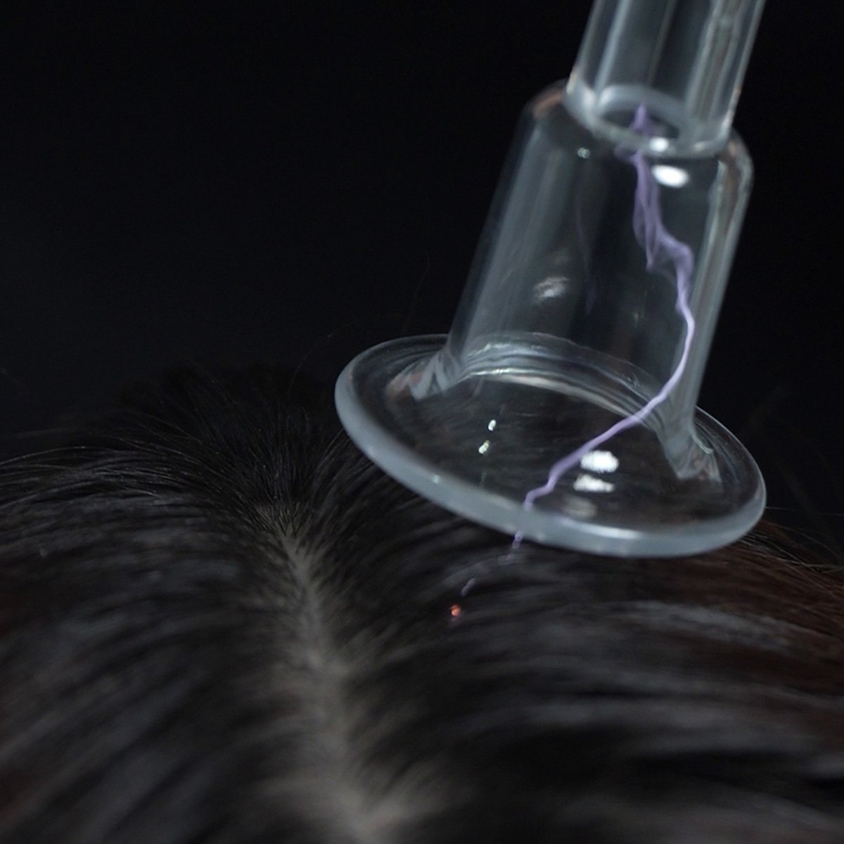 Relaxing, cooling wand glides over the scalp.